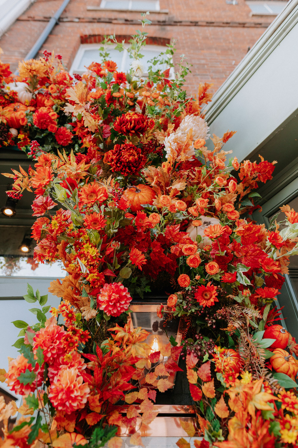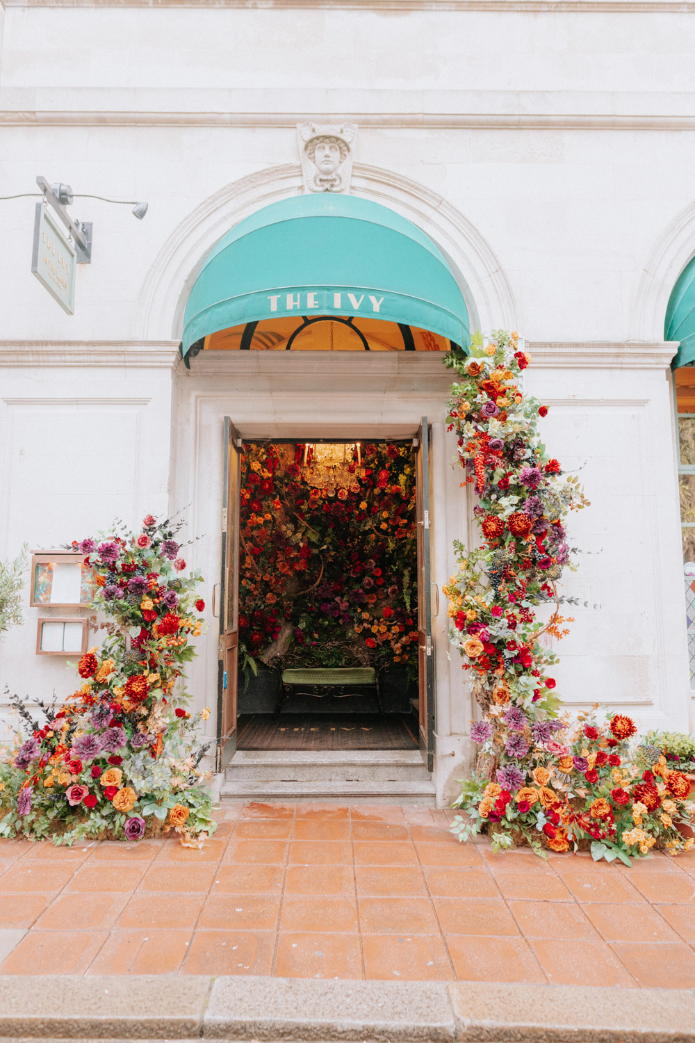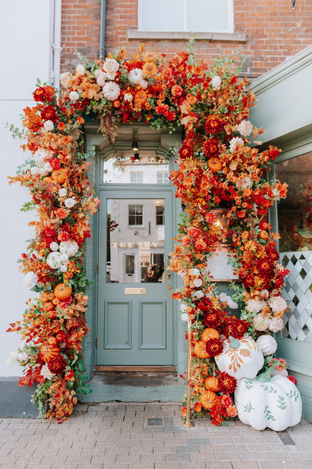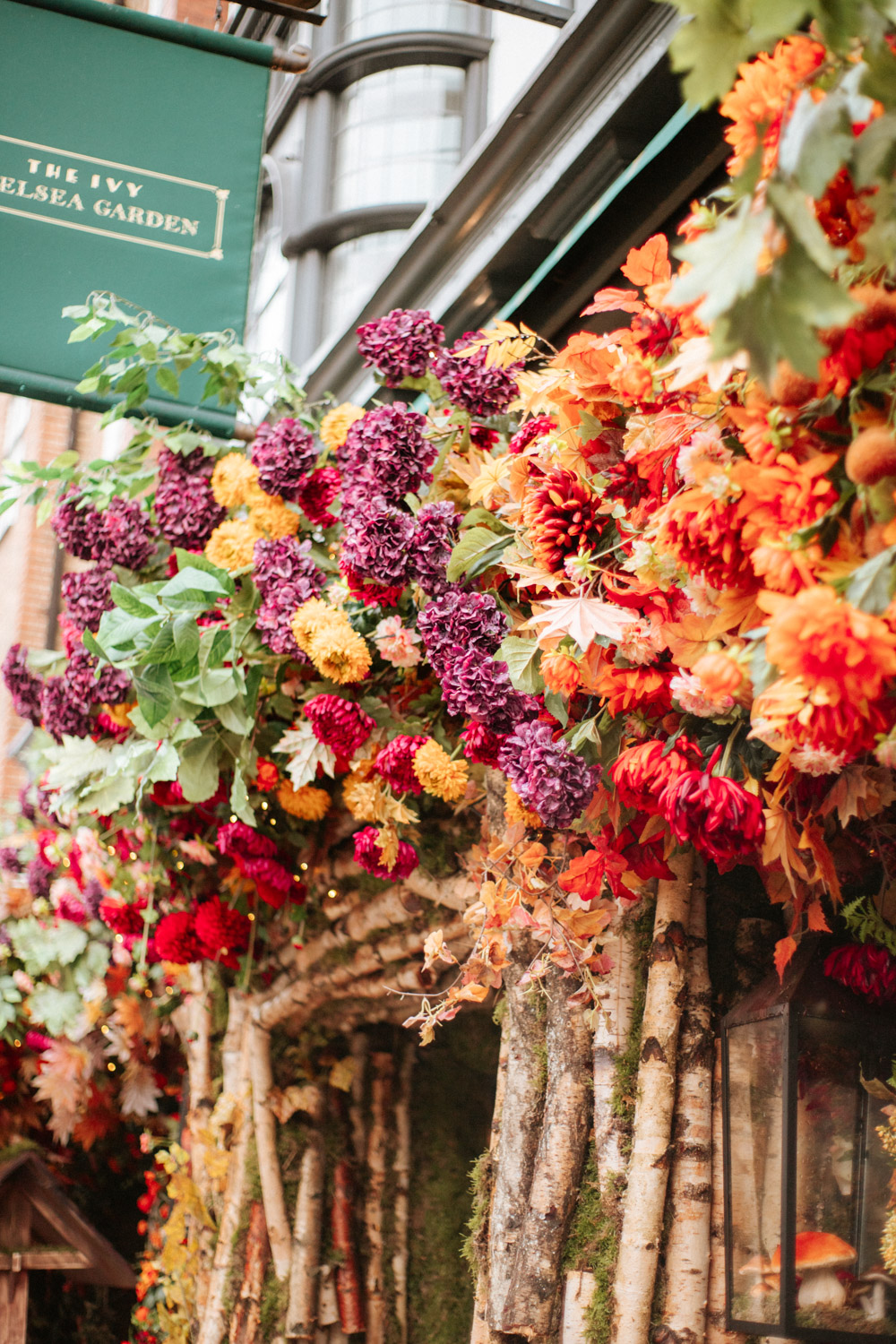 Elsewhere the richness of the season was embraced with fall foliage, ombré orange palettes and falling leaves at Icon Outlet and The Ivy Brighton. New for this year we also had the pleasure of dressing the beautiful Dalloway Terrace ready for their afternoon tea collaboration with designer Olivia Rubin. We channelled the resplendent garden theme with heavy flower coverage in a kaleidoscope of colours. And being able to celebrate Halloween once again kept the team on their toes with a flurry of spooky installations across London. From modern handpainted pumpkins at The Ivy Marlow Garden to Dia de los Muertos inspired decorations at Granary Square Brasserie we enjoyed working on such a range of concepts. There is no rest as we now dive head first into all things festive and without doubt our busiest season of the year!