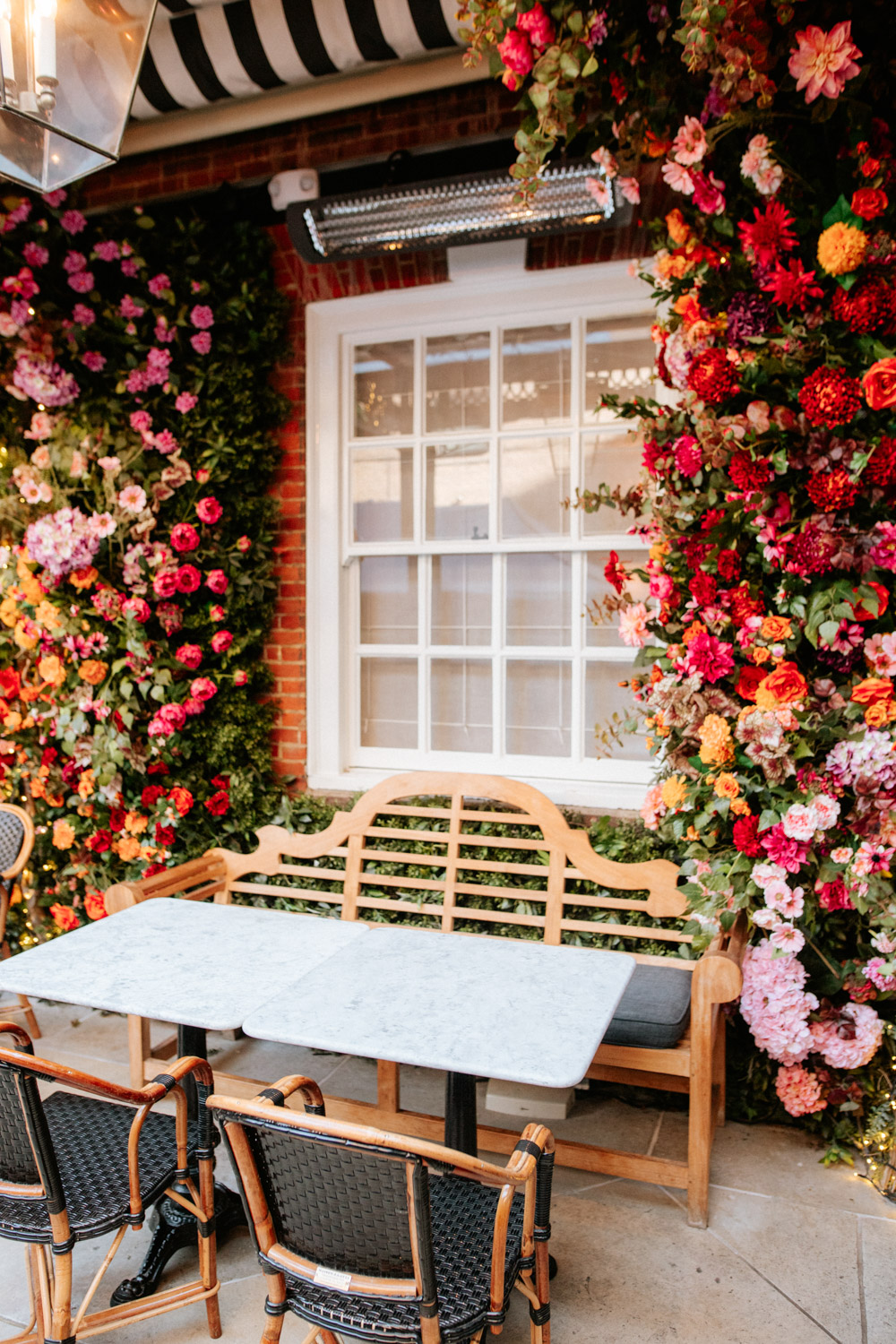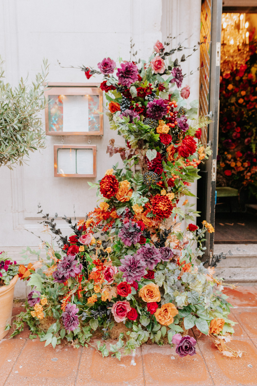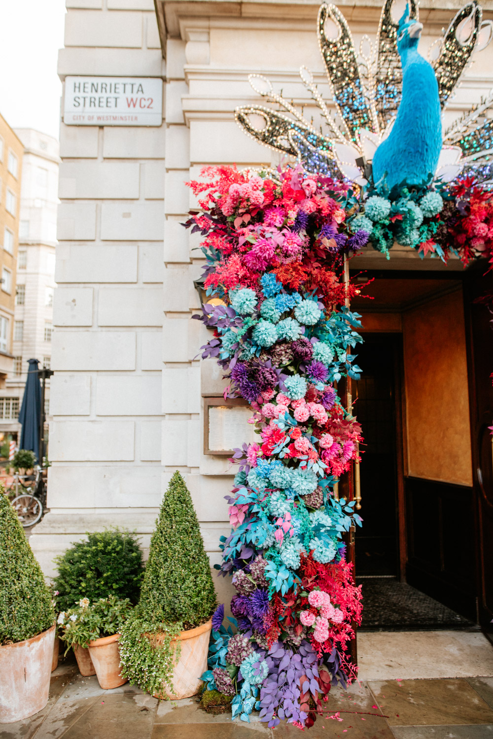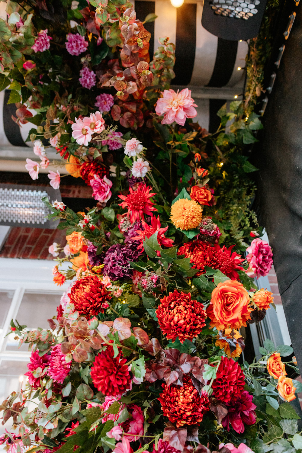 Elsewhere the richness of the season was embraced with fall foliage, ombré orange palettes and falling leaves at Icon Outlet and The Ivy Brighton. New for this year we also had the pleasure of dressing the beautiful Dalloway Terrace ready for their afternoon tea collaboration with designer Olivia Rubin. We channelled the resplendent garden theme with heavy flower coverage in a kaleidoscope of colours. And being able to celebrate Halloween once again kept the team on their toes with a flurry of spooky installations across London. From modern handpainted pumpkins at The Ivy Marlow Garden to Dia de los Muertos inspired decorations at Granary Square Brasserie we enjoyed working on such a range of concepts. There is no rest as we now dive head first into all things festive and without doubt our busiest season of the year!