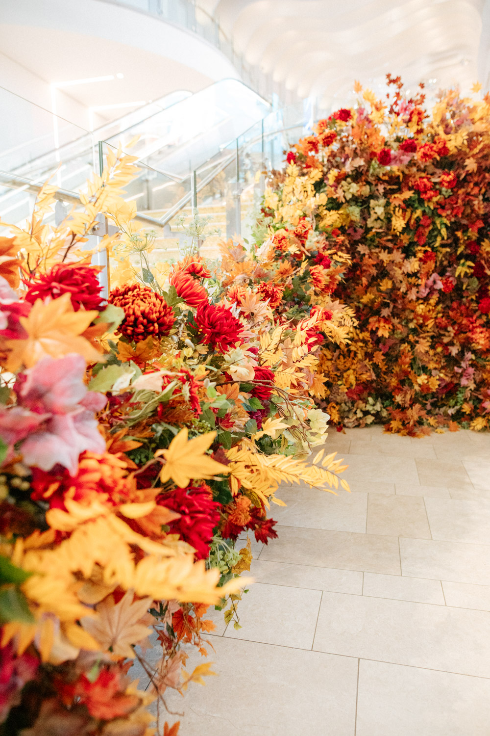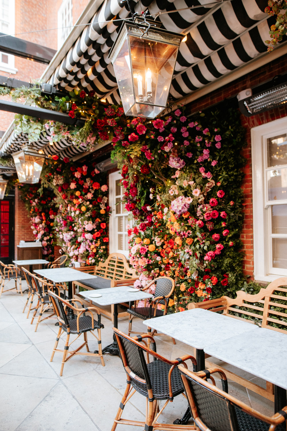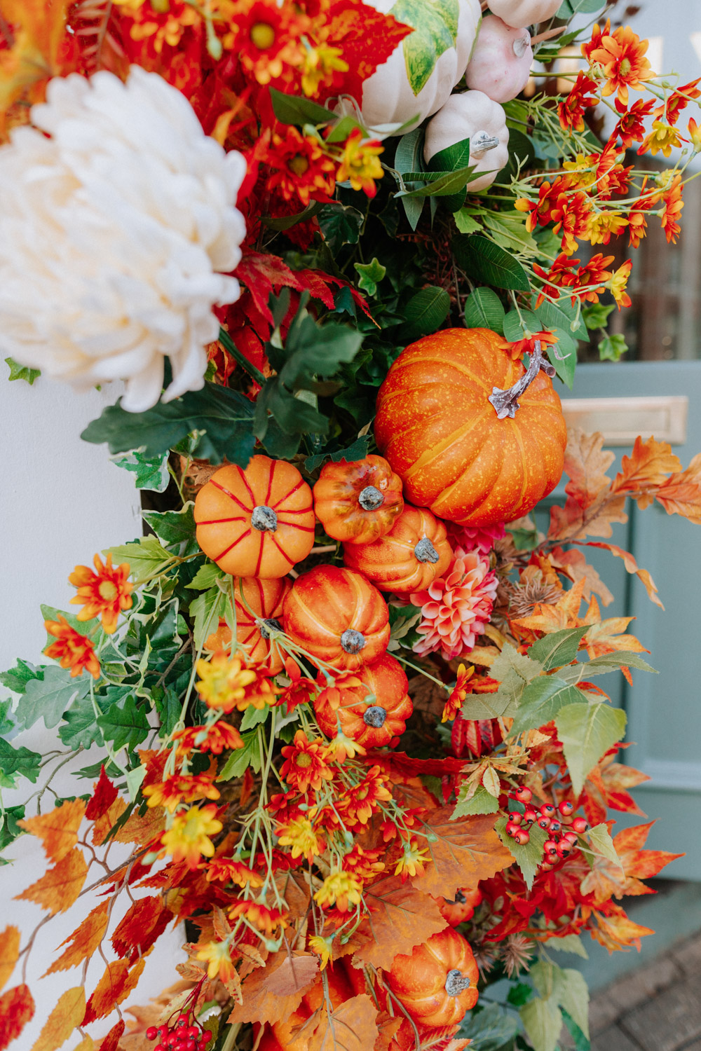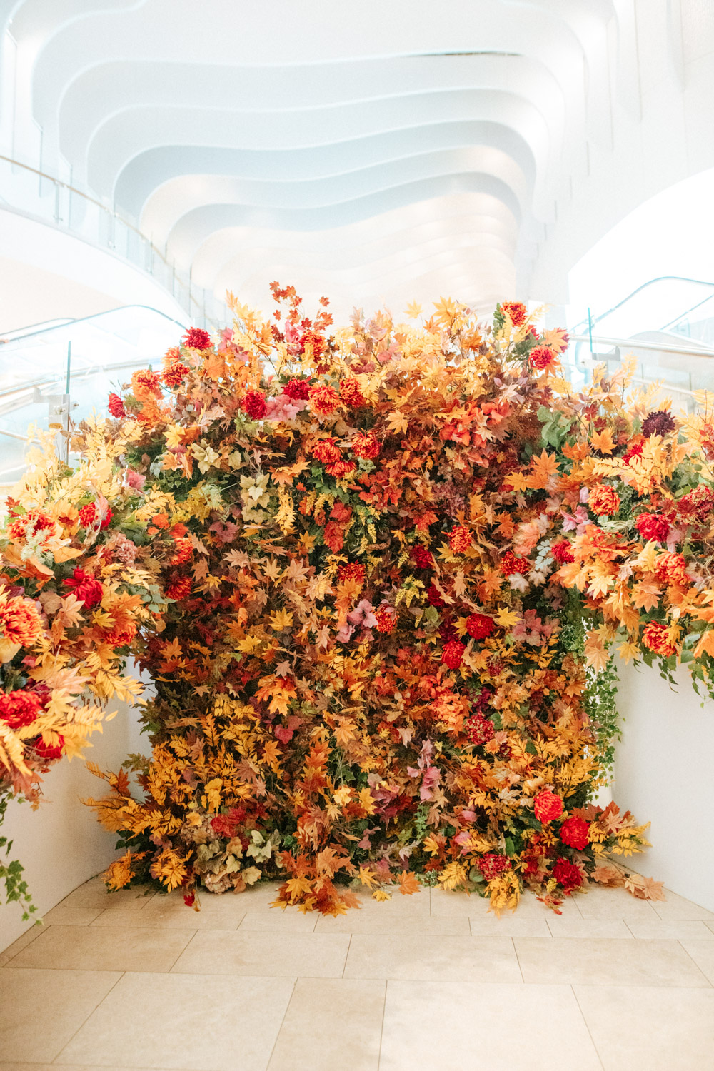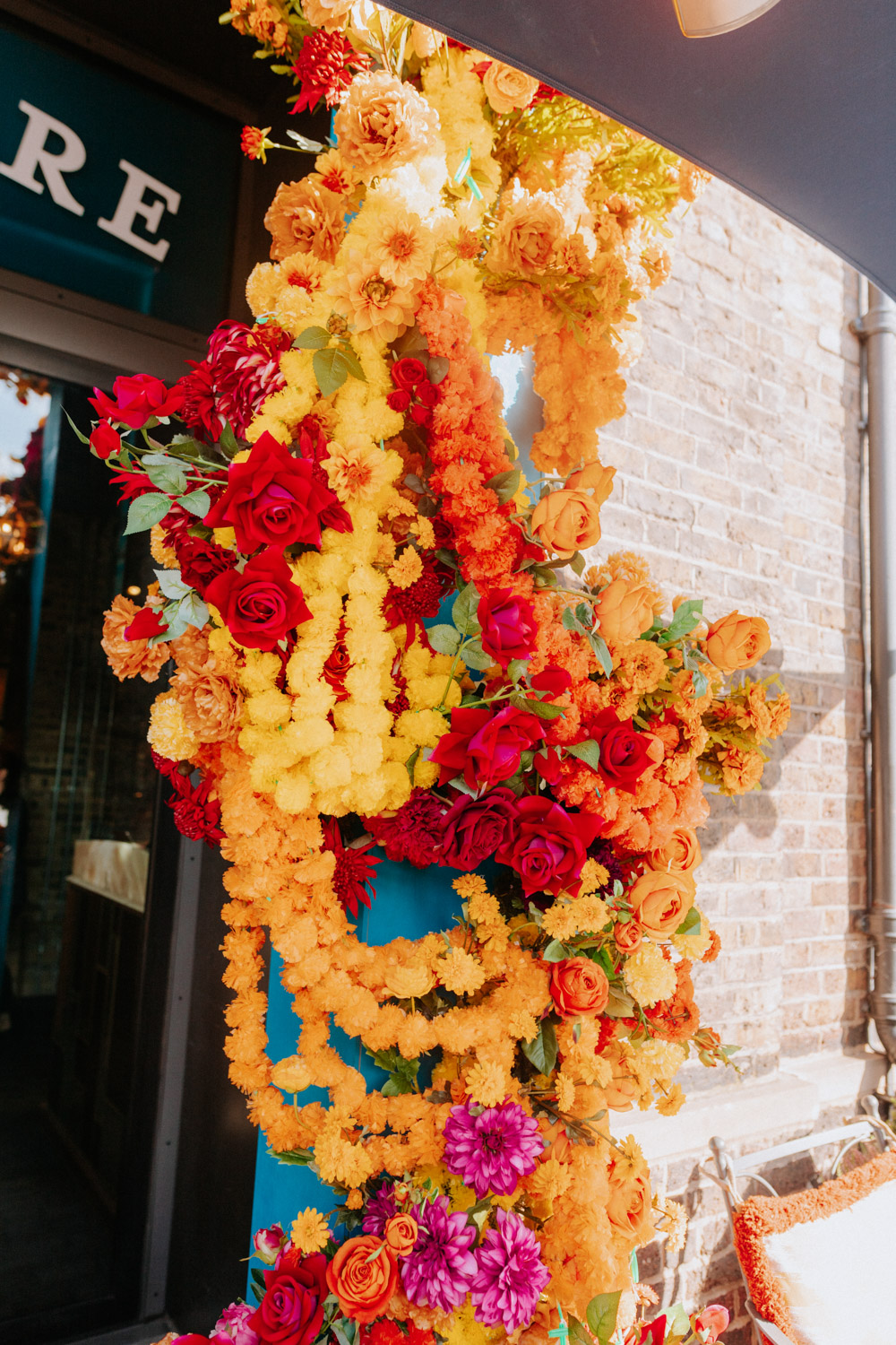 Elsewhere the richness of the season was embraced with fall foliage, ombré orange palettes and falling leaves at Icon Outlet and The Ivy Brighton. New for this year we also had the pleasure of dressing the beautiful Dalloway Terrace ready for their afternoon tea collaboration with designer Olivia Rubin. We channelled the resplendent garden theme with heavy flower coverage in a kaleidoscope of colours. And being able to celebrate Halloween once again kept the team on their toes with a flurry of spooky installations across London. From modern handpainted pumpkins at The Ivy Marlow Garden to Dia de los Muertos inspired decorations at Granary Square Brasserie we enjoyed working on such a range of concepts. There is no rest as we now dive head first into all things festive and without doubt our busiest season of the year!