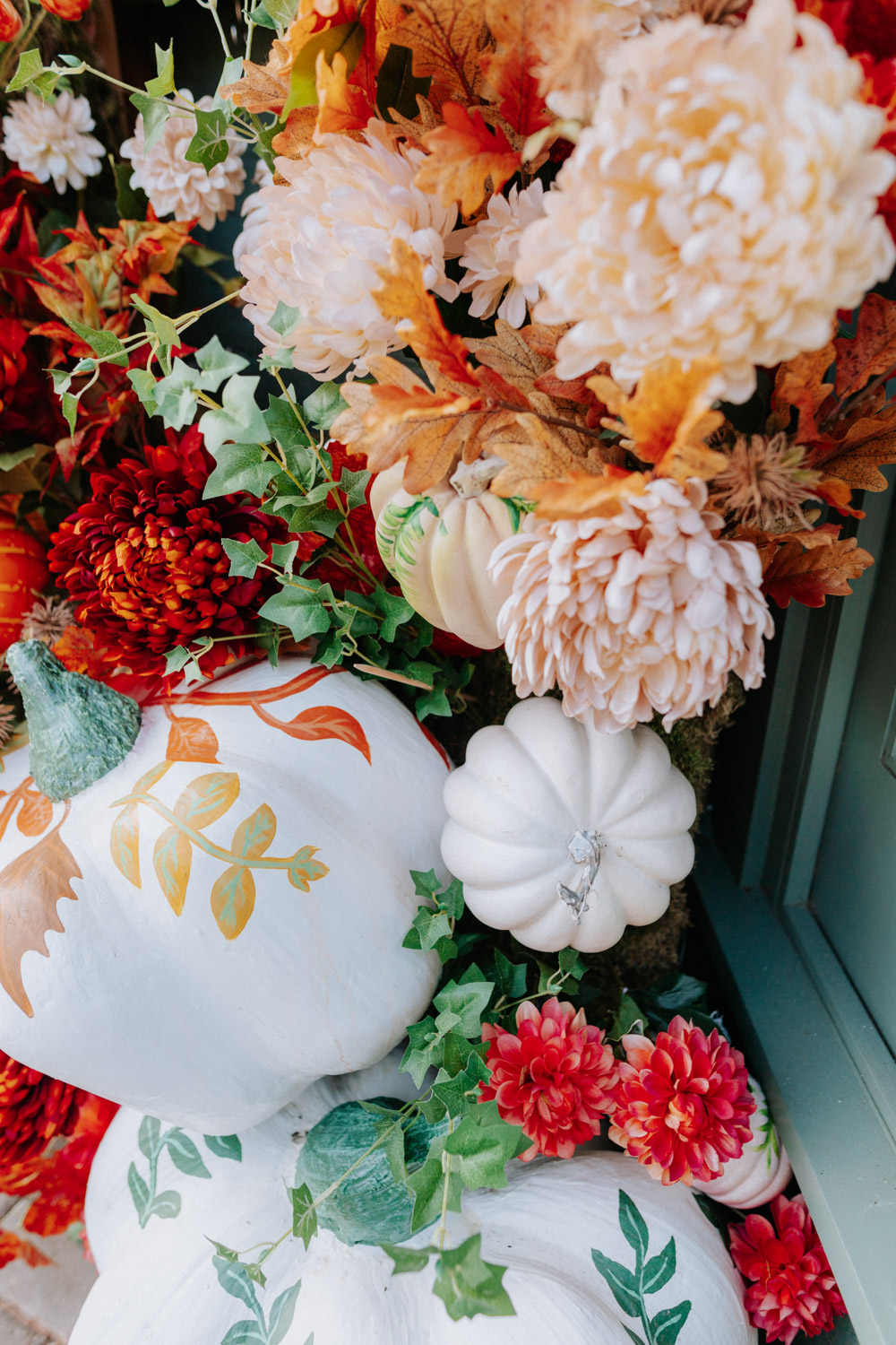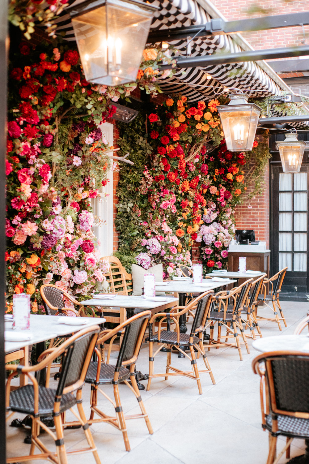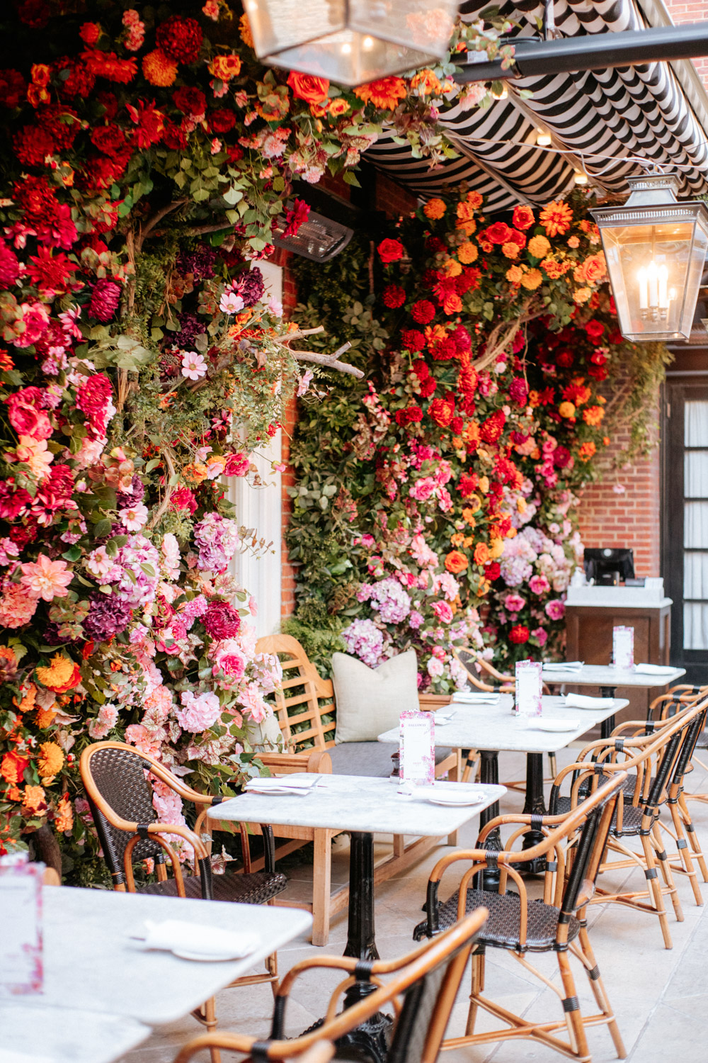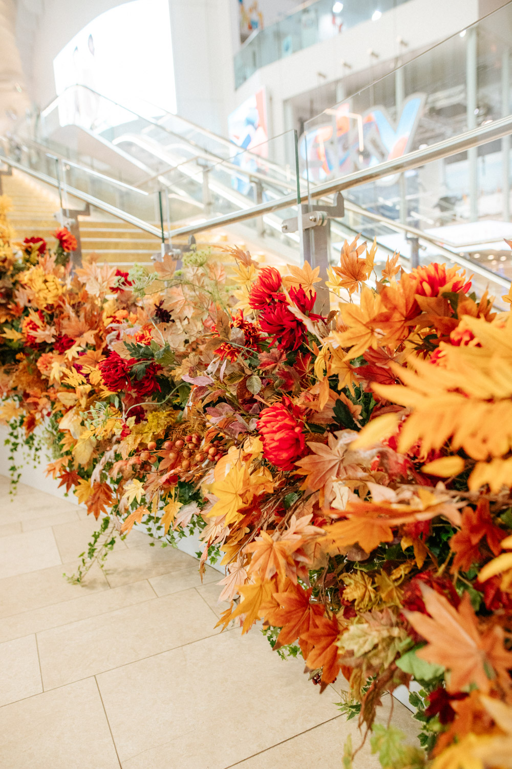 Elsewhere the richness of the season was embraced with fall foliage, ombré orange palettes and falling leaves at Icon Outlet and The Ivy Brighton. New for this year we also had the pleasure of dressing the beautiful Dalloway Terrace ready for their afternoon tea collaboration with designer Olivia Rubin. We channelled the resplendent garden theme with heavy flower coverage in a kaleidoscope of colours. And being able to celebrate Halloween once again kept the team on their toes with a flurry of spooky installations across London. From modern handpainted pumpkins at The Ivy Marlow Garden to Dia de los Muertos inspired decorations at Granary Square Brasserie we enjoyed working on such a range of concepts. There is no rest as we now dive head first into all things festive and without doubt our busiest season of the year!