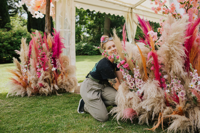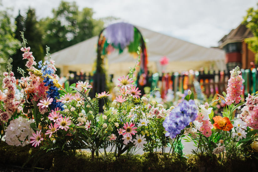 Be prepared for ALL THE FLORALS this Summer of Love garden party was covered head-to-toe in rainbow blooms. We love a great party and this brief for one of our favourite clients was such fun for the team to design and create. Dreamy rainbow arch entrances, insta-worthy floral swings, pampas grass explosions, magical woodland tree chairs and even a flower framed trampoline! And a big thanks to our friends at Bubblegum Balloons for the mega rainbow paper tassels.